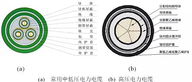 ② 一般情況3kV及以下低壓電纜沒有絕緣屏蔽層,6kV及以上的中高壓電纜都必須有絕緣屏蔽層。
