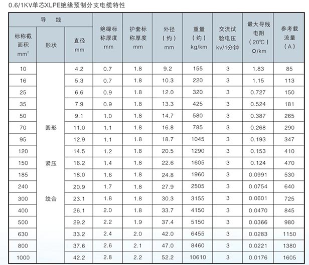 預(yù)制分支電纜得我主要技術(shù)性能及外形尺寸