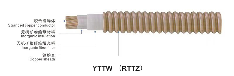 YTTW系列金屬護(hù)套無機(jī)礦物絕緣電纜是由本公司研制成功的重大科技創(chuàng)新產(chǎn)品。采用先進(jìn)的生產(chǎn)工藝,全自動(dòng)機(jī)械化生產(chǎn),產(chǎn)品質(zhì)量可靠。產(chǎn)品屬國內(nèi)外首創(chuàng),有自主知識(shí)產(chǎn)權(quán)。產(chǎn)品結(jié)構(gòu)先進(jìn),導(dǎo)體采用多股銅絞線,阻抗小、載流量小、柔軟性好;絕緣采用耐高溫(1100℃以上)無機(jī)礦物絕緣帶機(jī)械繞包,絕緣層緊密均勻、耐潮濕、柔性好;護(hù)套采用銅護(hù)套(耐高溫1083℃),經(jīng)連接軋紋,散熱快,能彎曲。RTTZ電纜是2017年國家標(biāo)準(zhǔn)GB/T34926-2017 《額定電壓0.6/1KV及以下云母帶礦物絕緣波紋銅護(hù)套電纜及終端》發(fā)布后,由YTTW電纜重新命名而來。
