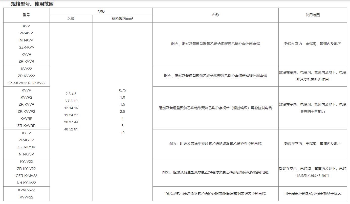 額定電壓450/750V聚氯乙烯絕緣控制電纜和450/750V交聯(lián)聚乙烯絕緣控制電纜分別用于450/750V及以下控制、監(jiān)控回路及保護(hù)線等場(chǎng)所。聚氯乙烯絕緣控制電纜的工作溫度為70℃,交聯(lián)聚乙烯絕緣控制電纜的工作溫度為90℃。